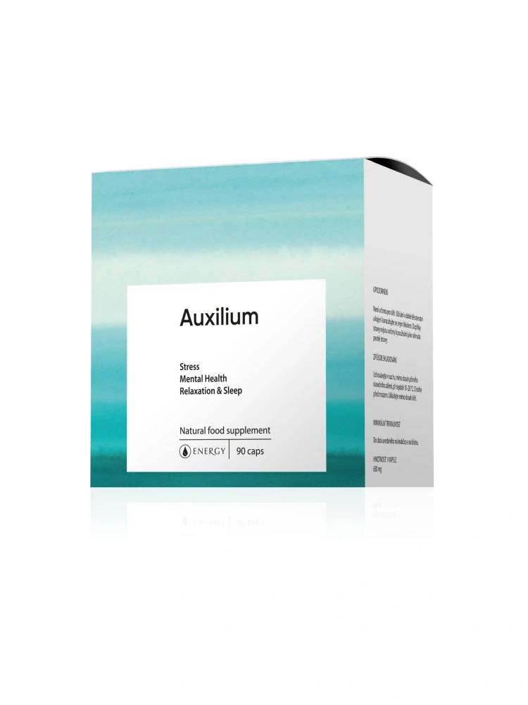 Auxilium je čistě přírodní produkt pečující o vaše duševní zdraví*. Podporuje nervový systém**, napomáhá zvládat únavu a stres**, zajišťuje lepší spánek*** a celkový pocit uvolnění a relaxace***.