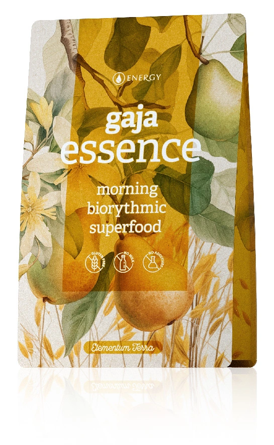 Gaja essence je čistě přírodní, harmonizační a biorytmická kaše sestavená podle principů tradiční čínské medicíny (TČM). Respektuje nutriční potřeby a klíčové biorytmy organismu – ve správnou chvíli dodává našemu tělu co nejšetrněji připravené a vzájemně sladěné esenciální ingredience. Všechny suroviny jsou pečlivě vybrané s důrazem na kvalitu i způsob zpracování, kdy byla zachována jejich ryzí čistota a živá podstata. Kaše je naprosto bez chemie, aditiv a konzervantů. Neobsahuje lepek, živočišné mléko ani rafinovaný cukr.